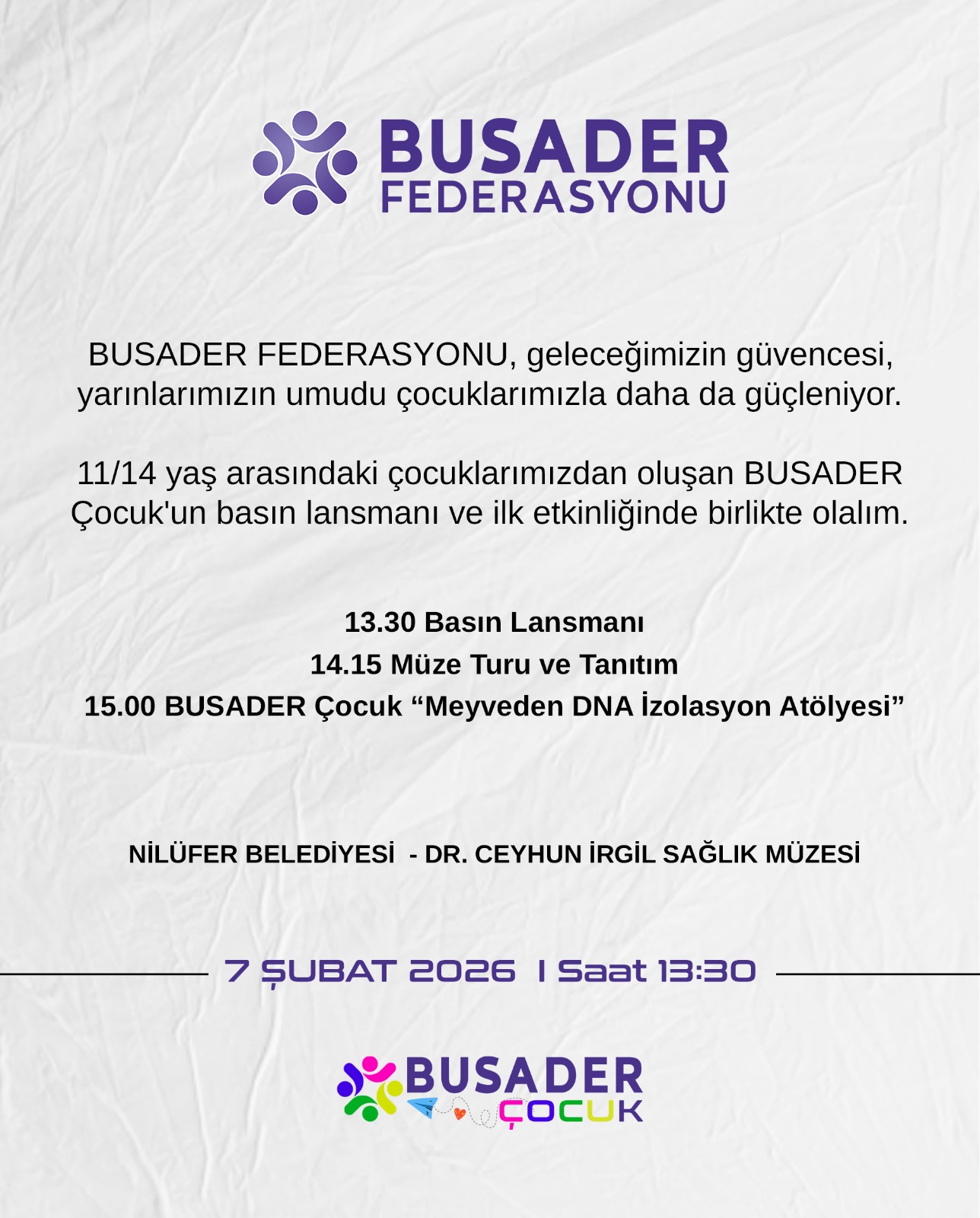 BUSADER ÇOCUK KURULUŞ LANSMANI Gallery BUSADER ÇOCUK KURULUŞ LANSMANI ETKİNLİKLER BUSADER ÇOCUK KURULUŞ LANSMANIBusader Federasyonu2026-02-19T12:02:36+03:007 Şubat 2026|