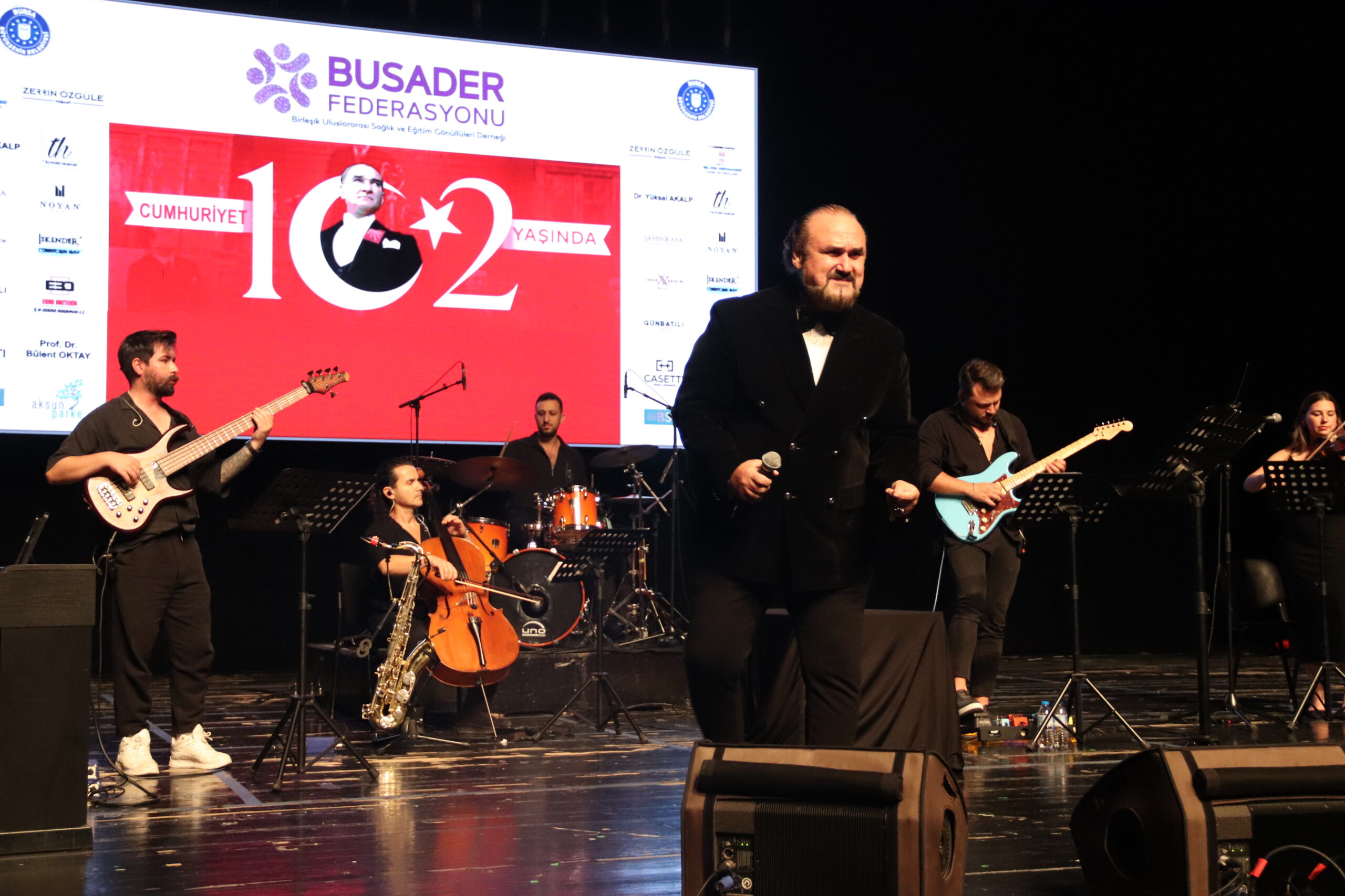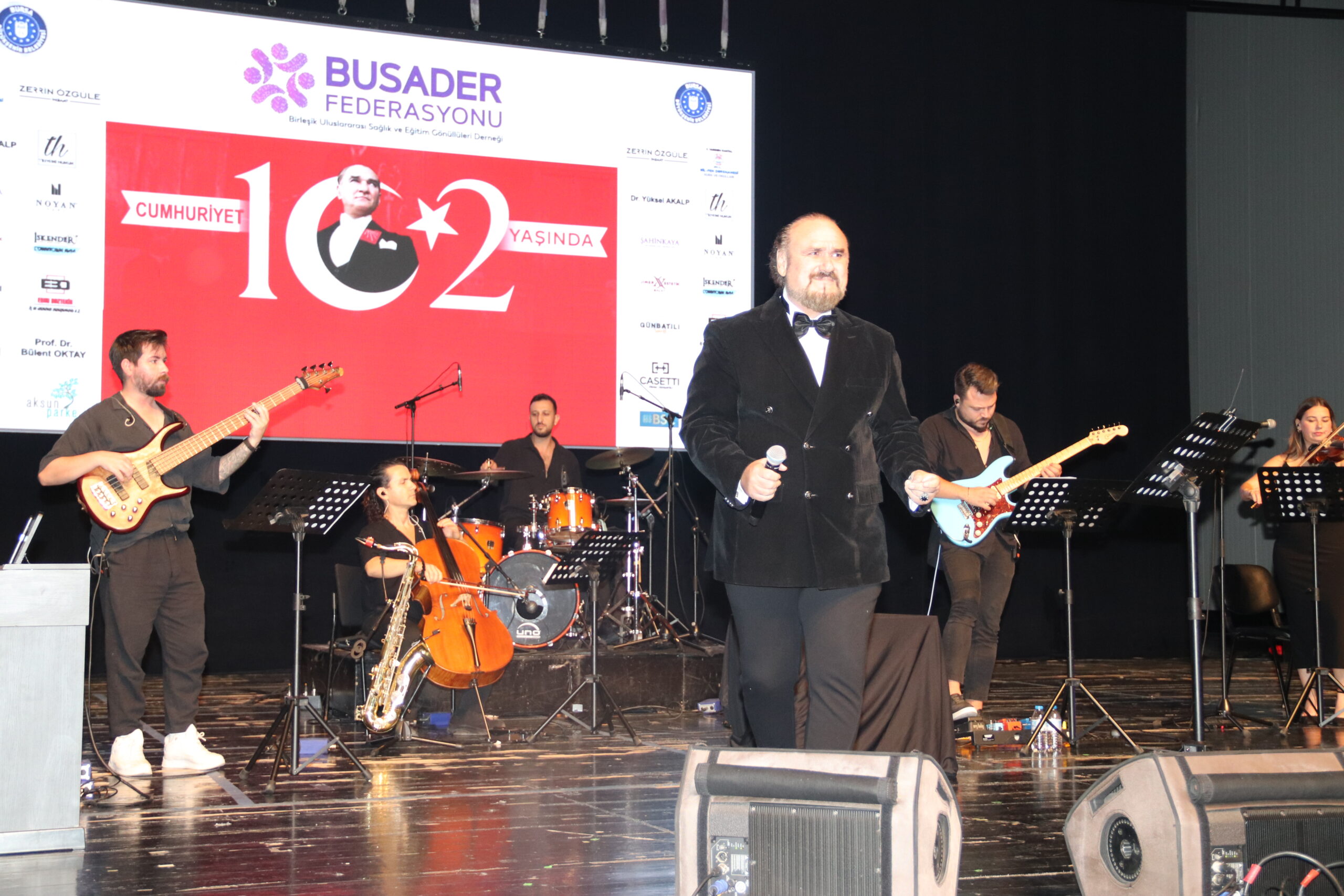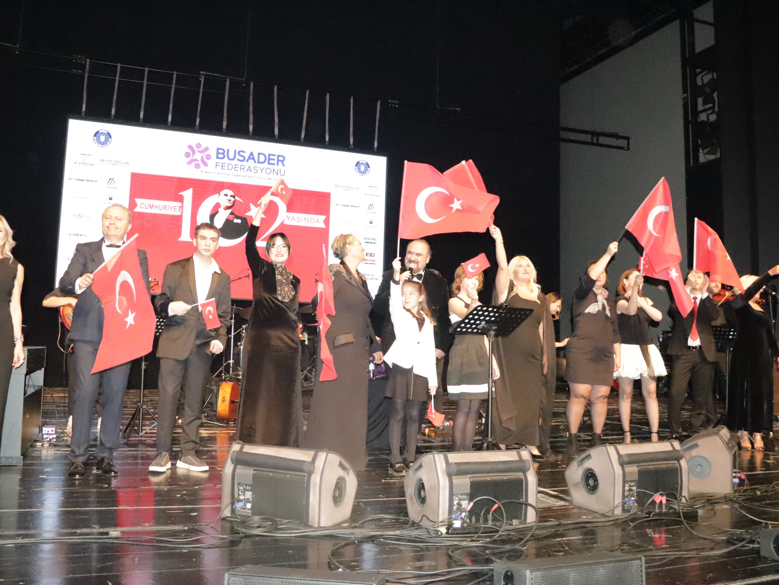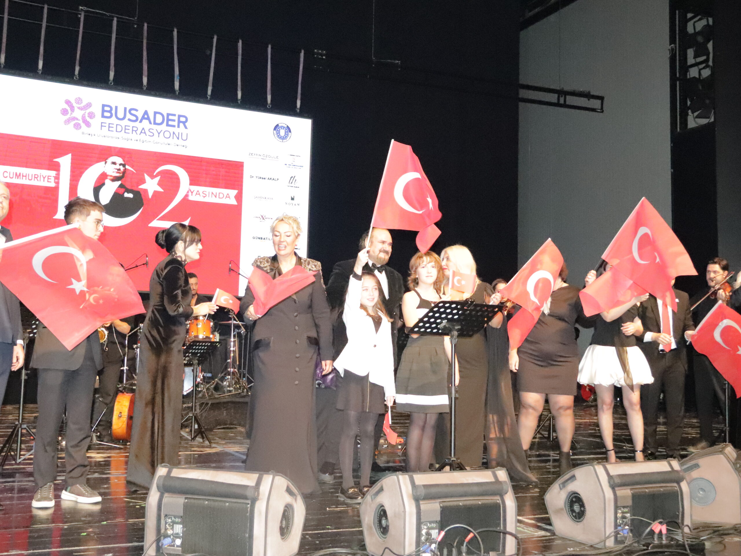 Cumhuriyetimizin 102. Yılını Hakan Aysev ve Orkestrası eşliğinde muhteşem bir konserle kutladık. Federasyonumuza bağlı derneklerimizin başkan, yönetim kurulu ve üyeleriyle katıldığı bu güzel geceye Bursa BUSADER derneğimiz ev sahipliği yaptı.