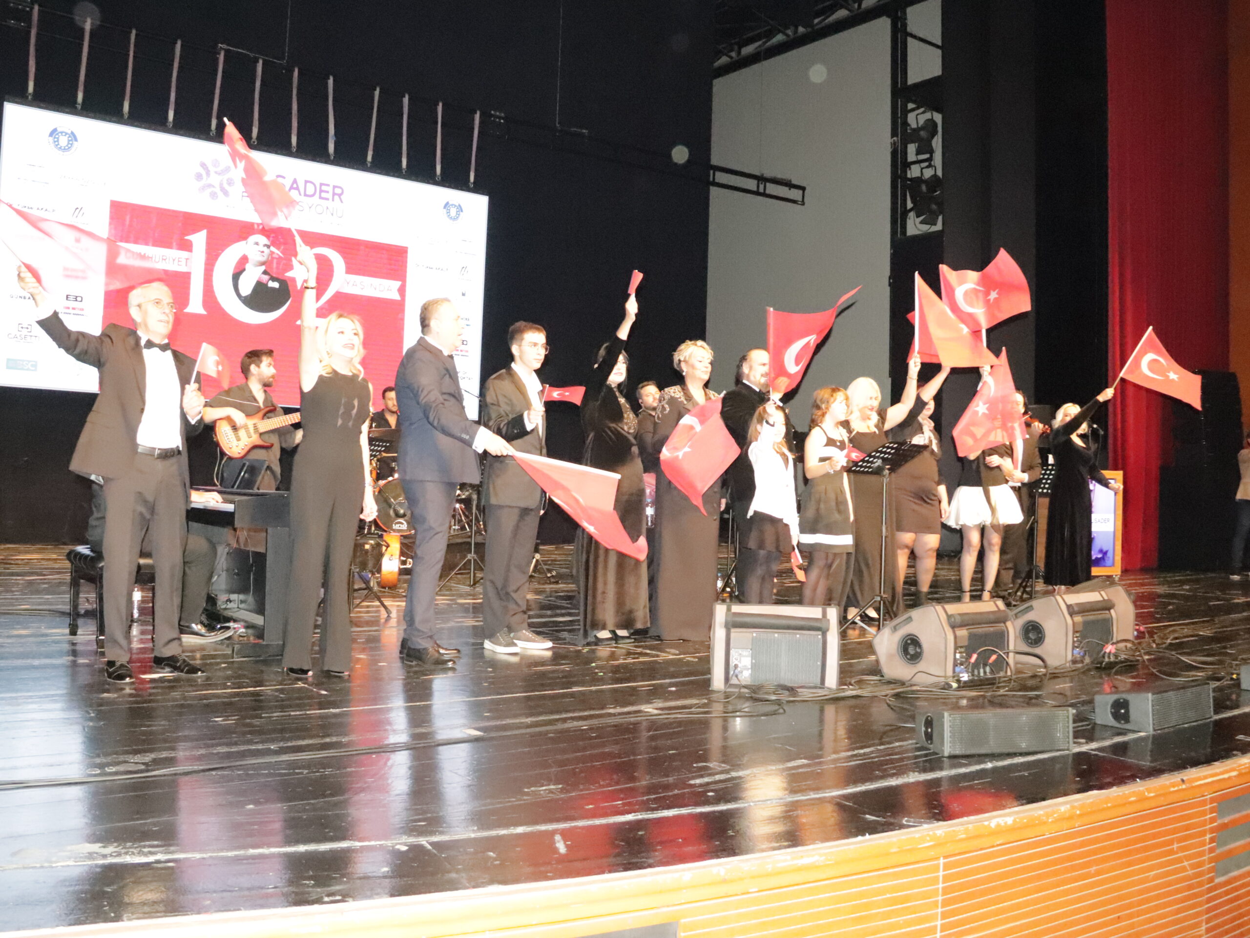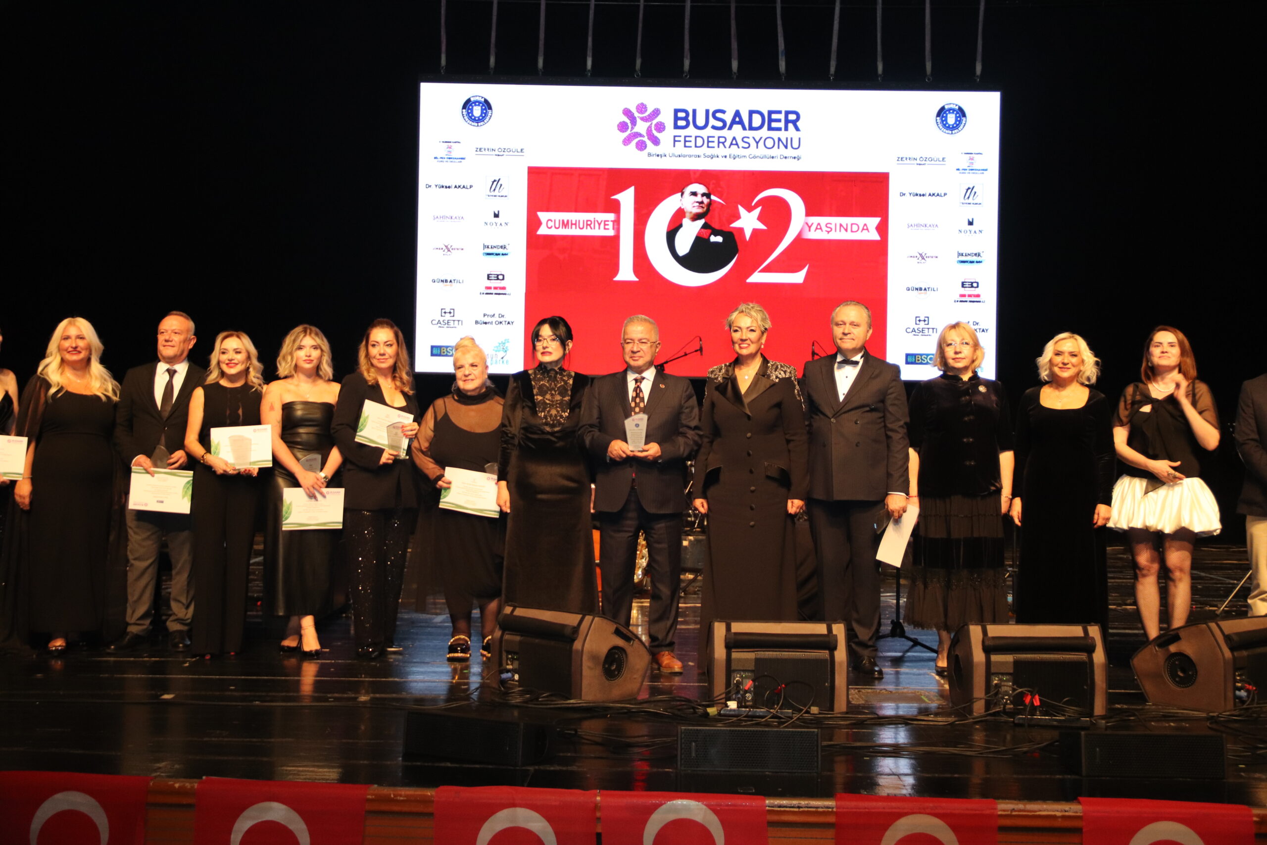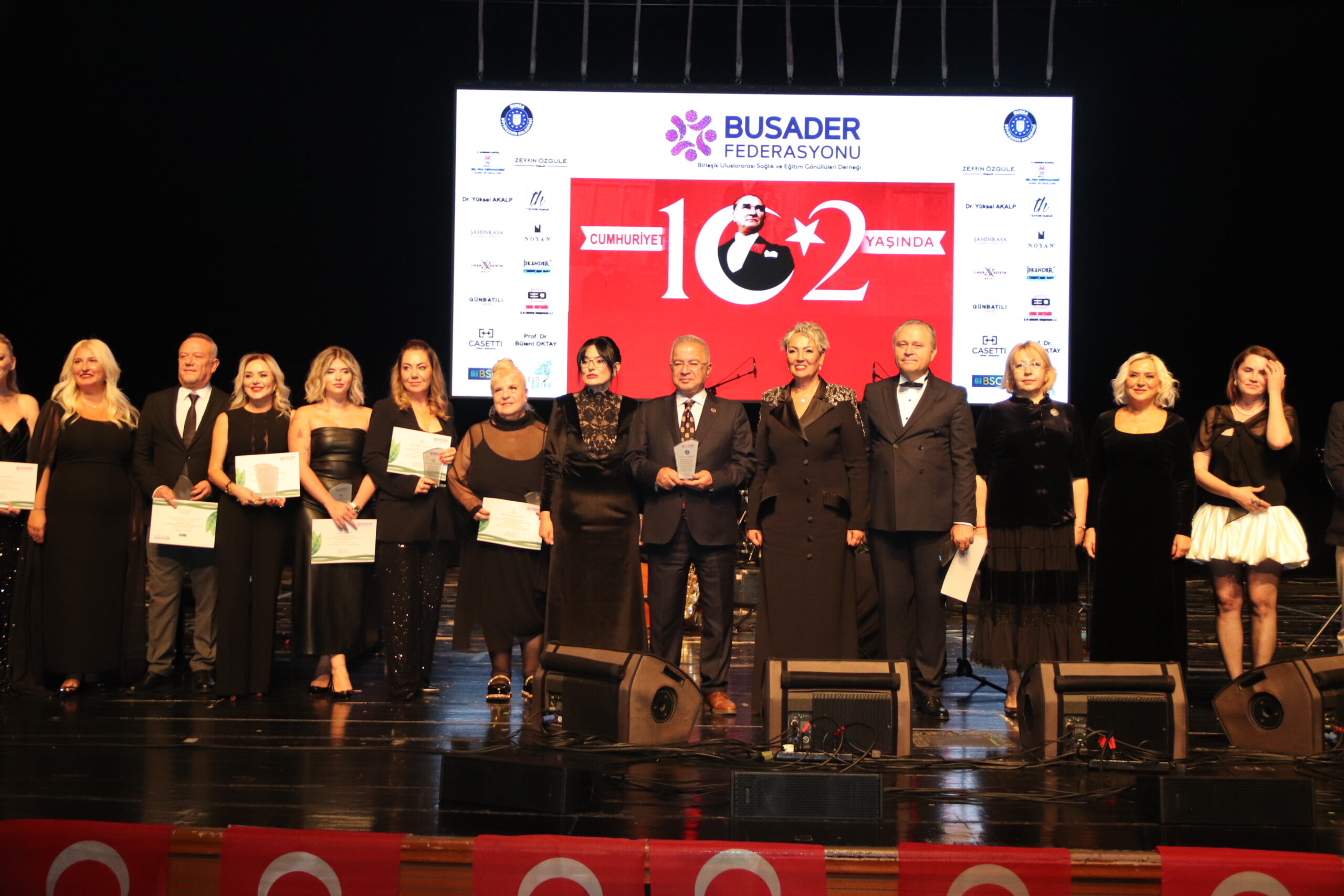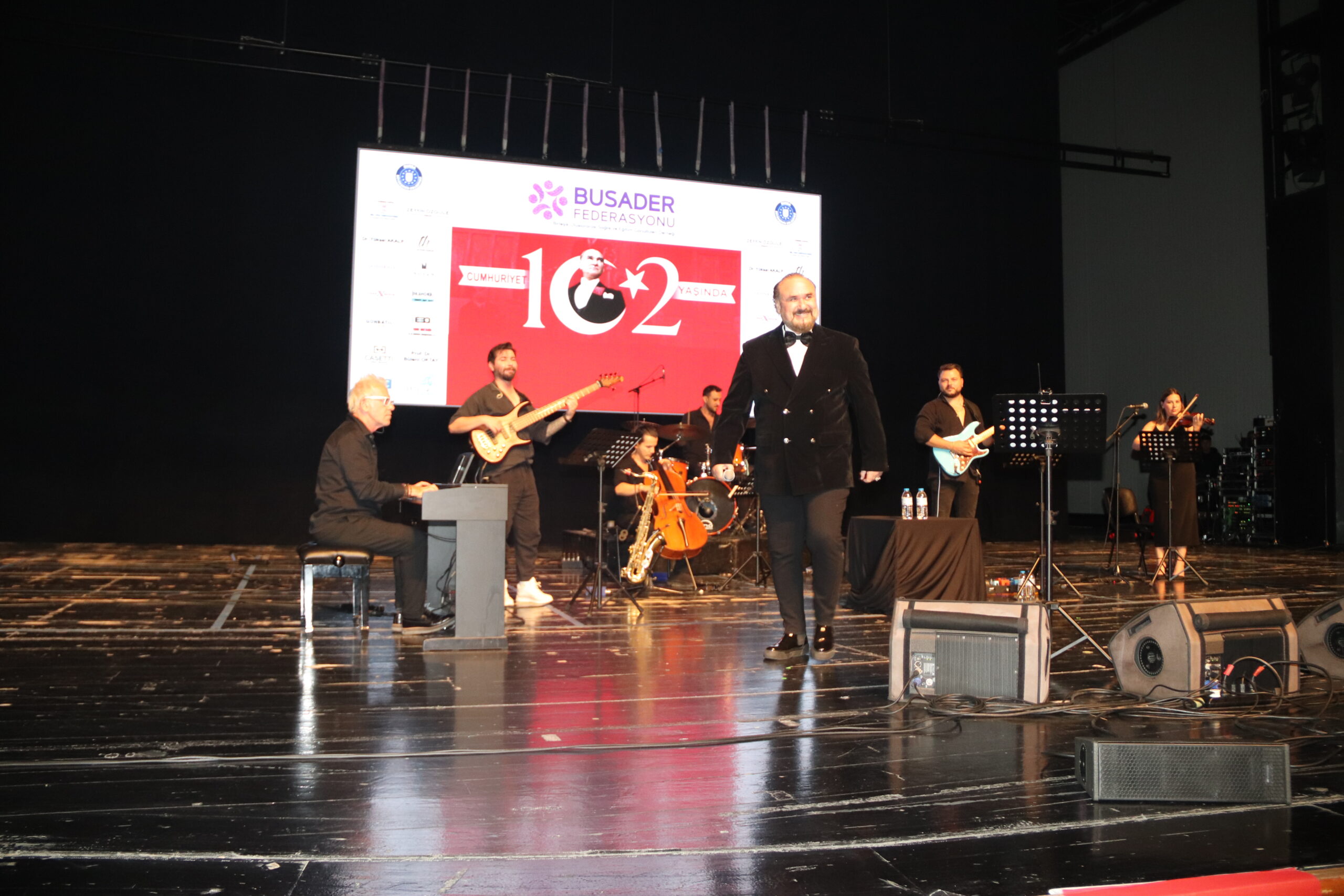 Cumhuriyetimizin 102. Yılını Hakan Aysev ve Orkestrası eşliğinde muhteşem bir konserle kutladık. Federasyonumuza bağlı derneklerimizin başkan, yönetim kurulu ve üyeleriyle katıldığı bu güzel geceye Bursa BUSADER derneğimiz ev sahipliği yaptı.