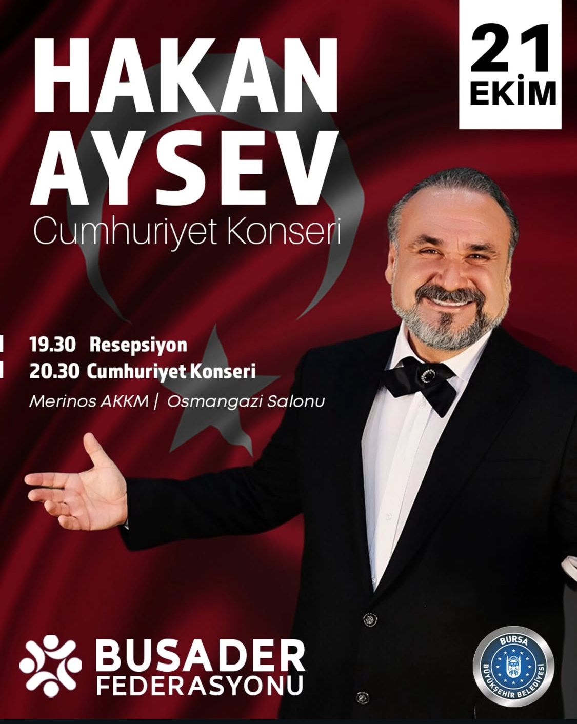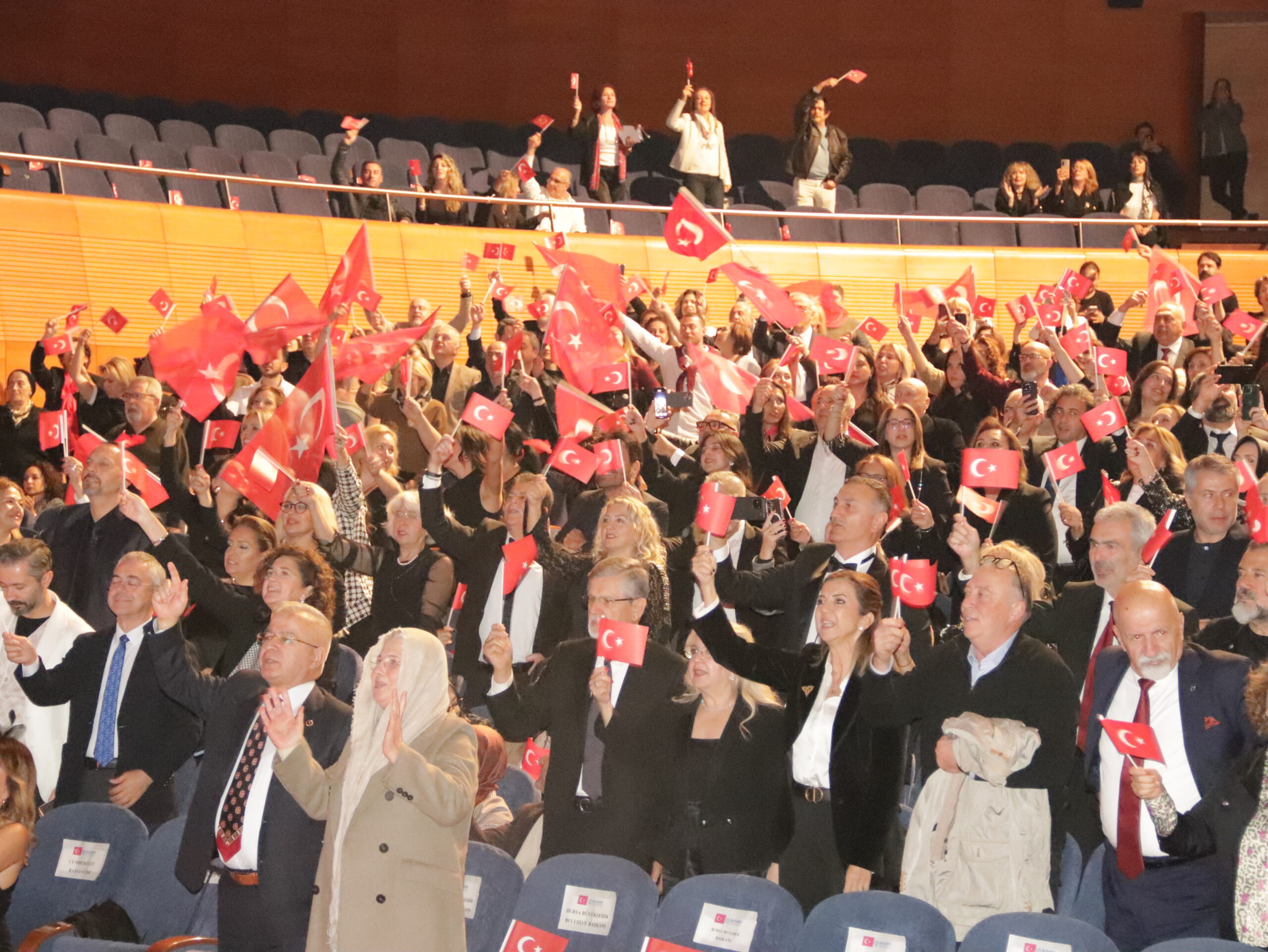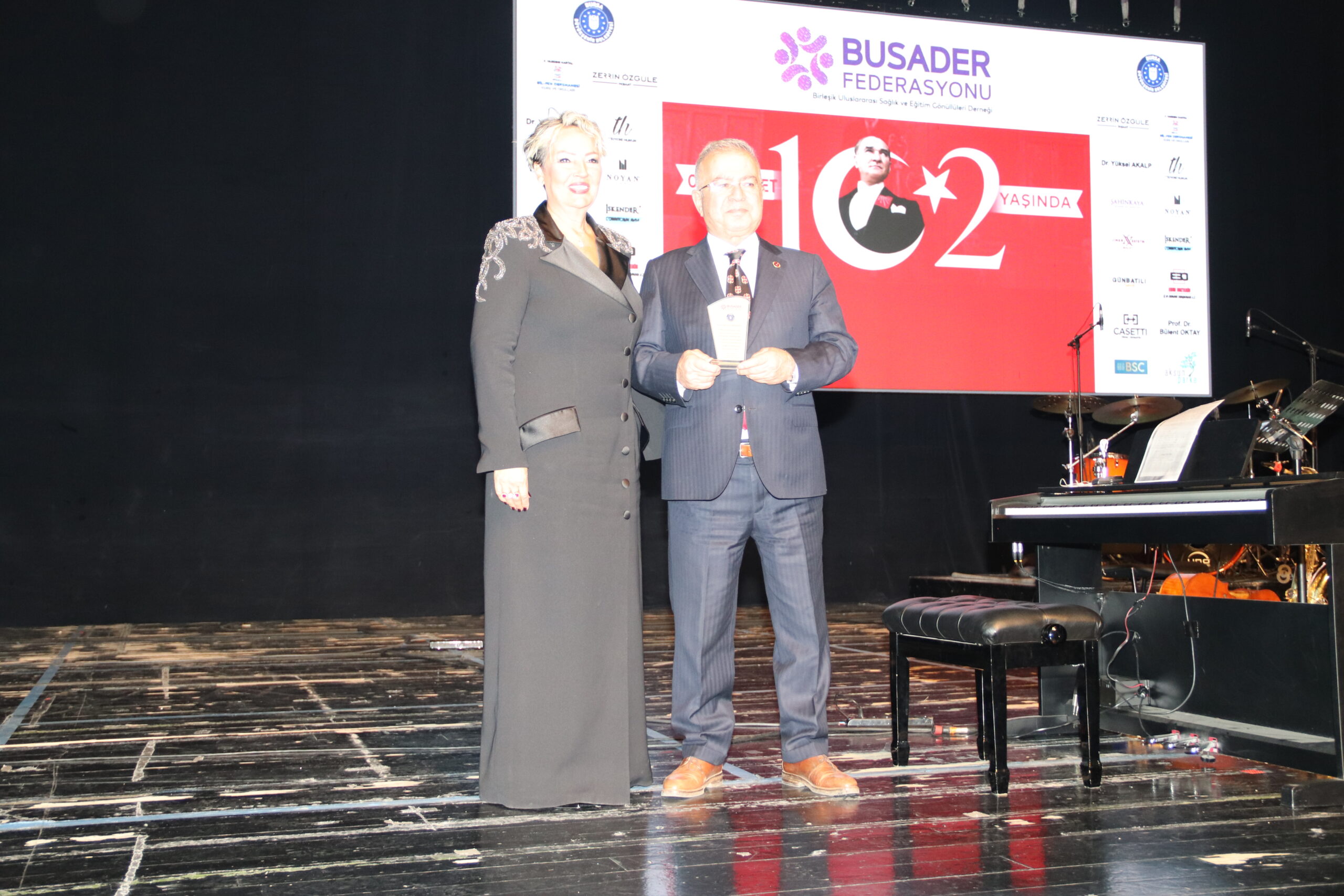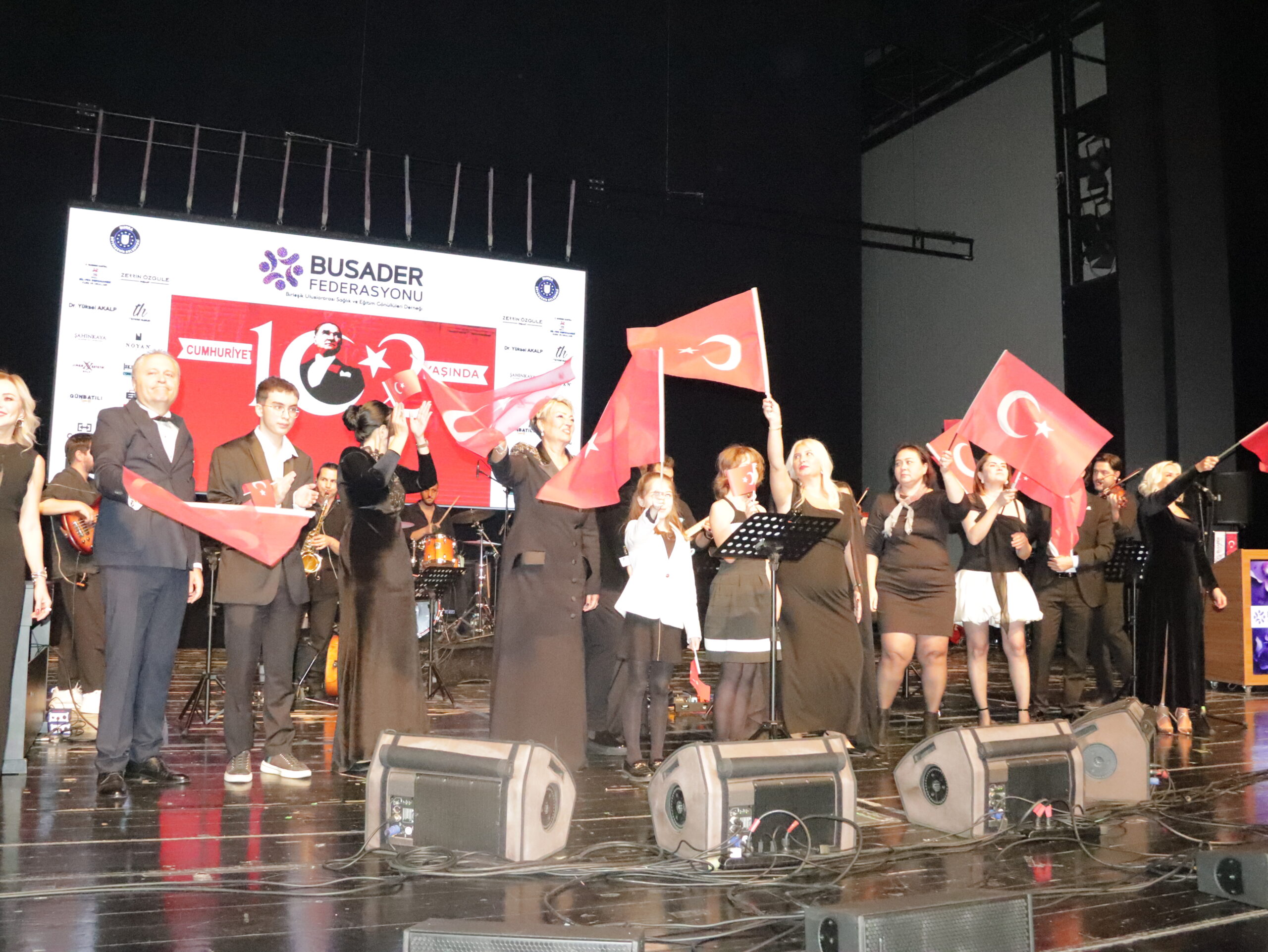 Cumhuriyetimizin 102. Yılını Hakan Aysev ve Orkestrası eşliğinde muhteşem bir konserle kutladık. Federasyonumuza bağlı derneklerimizin başkan, yönetim kurulu ve üyeleriyle katıldığı bu güzel geceye Bursa BUSADER derneğimiz ev sahipliği yaptı.