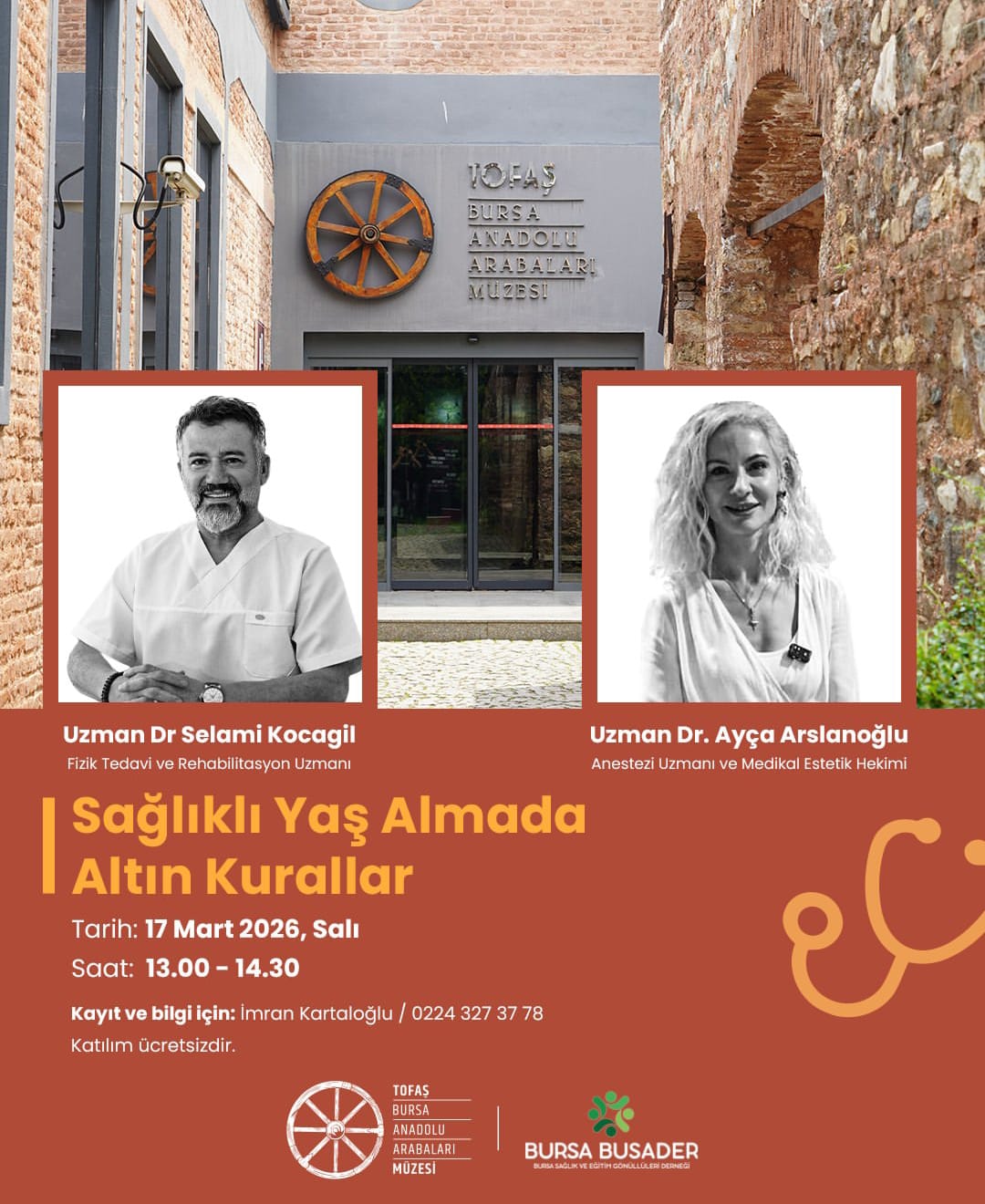 Uzman Dr. Selami Kocagil ve üyelerimizden Uzman Dr. Ayça Arslanoğlu’nu konuşmacı olduğu seminerimizde Tofaş Anadolu Arabaları Müzesi’nde yüksek katılım sağlanmış ve konuklarımız sağlıklı yaşamın altın kurallarını uzmanlarımızdan dinlediler.