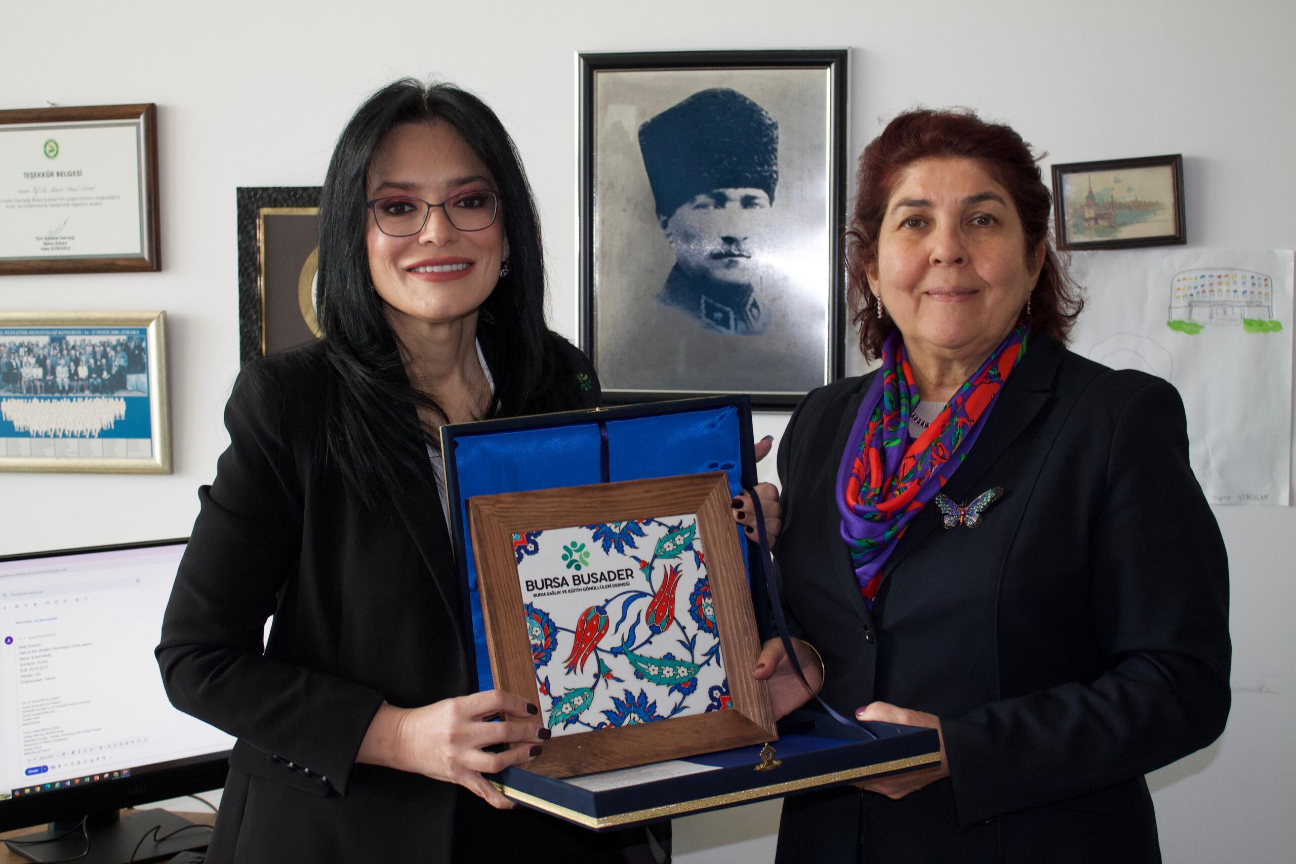 Uludağ Üniversitesi Tıp Fakültesi Sabahattin Gazioğlu Çocuk hematolojiisi ve onkoloji Hastanesi’nde yatmakta olan , kanserle mücadele eden çocuklarımıza ramazan bayramı hediyelerini takdim ettik. Bölüm başkanı Profesör Dr. Adalet Meral Güneş ‘e derneğimizin kurumsal hediyesi olan Bursa BUSADER logolu İznik çinisi ayrıca takdim ettik